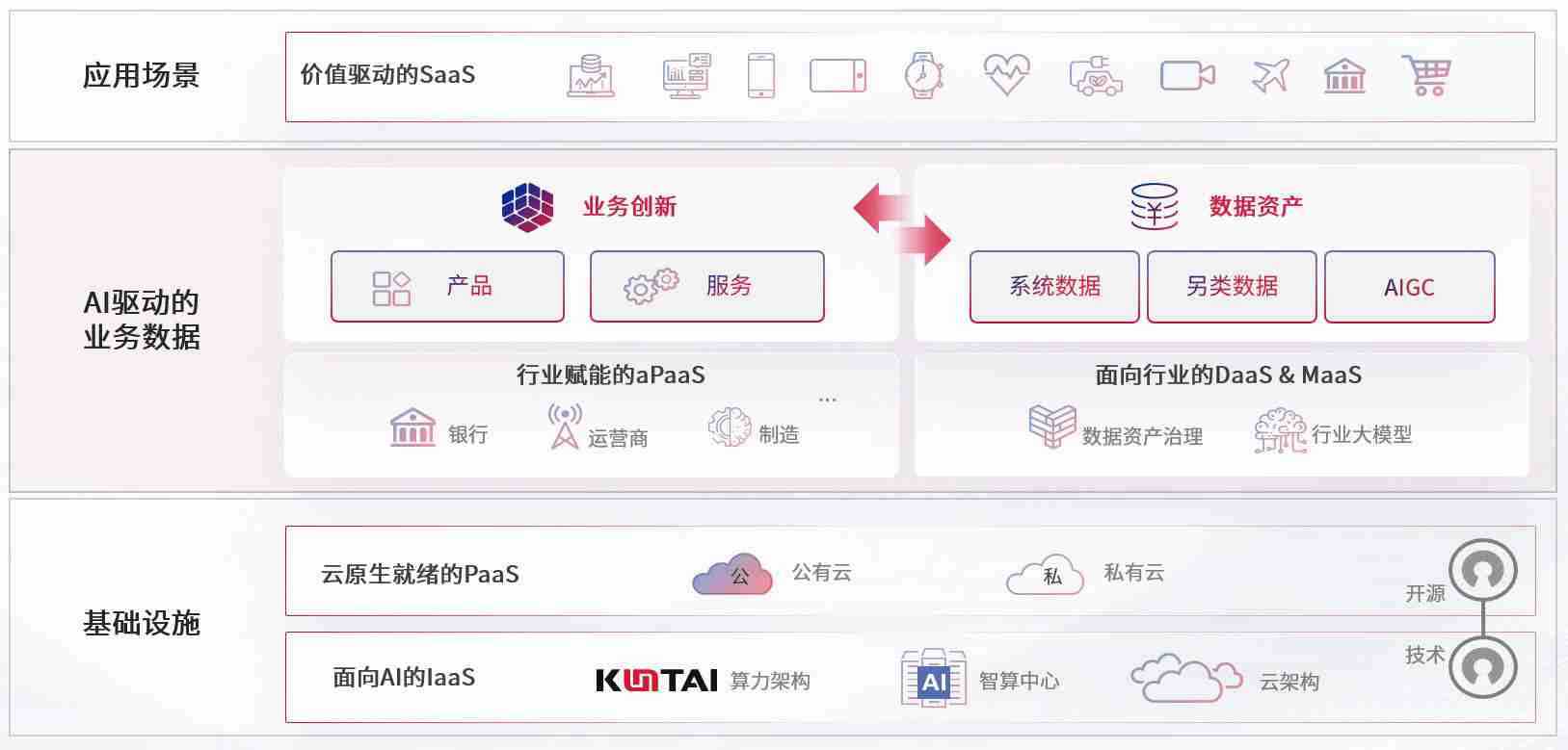数字时代,,,,围绕企业数字化转型的关键要素,,,,Z6尊龙时凯数码开创性的提出数云融合战略和技术体系框架,,,着力在云原生、、、、数字原生、、、AI原生和信创产业上架构产品和服务能力,,,,为处在不同数字化转型阶段的快消零售、、、、汽车、、、、金融、、、、医疗、、、政企、、、教育、、、、运营商等行业客户提供泛在的敏捷IT能力和融合的数据驱动能力,,,,构建跨界融合创新的数字业务场景和新业务模式,,,助力企业级客户建立面向未来的核心能力和竞争优势,,,全面推动社会的数字化、、智能化转型升级。。。。